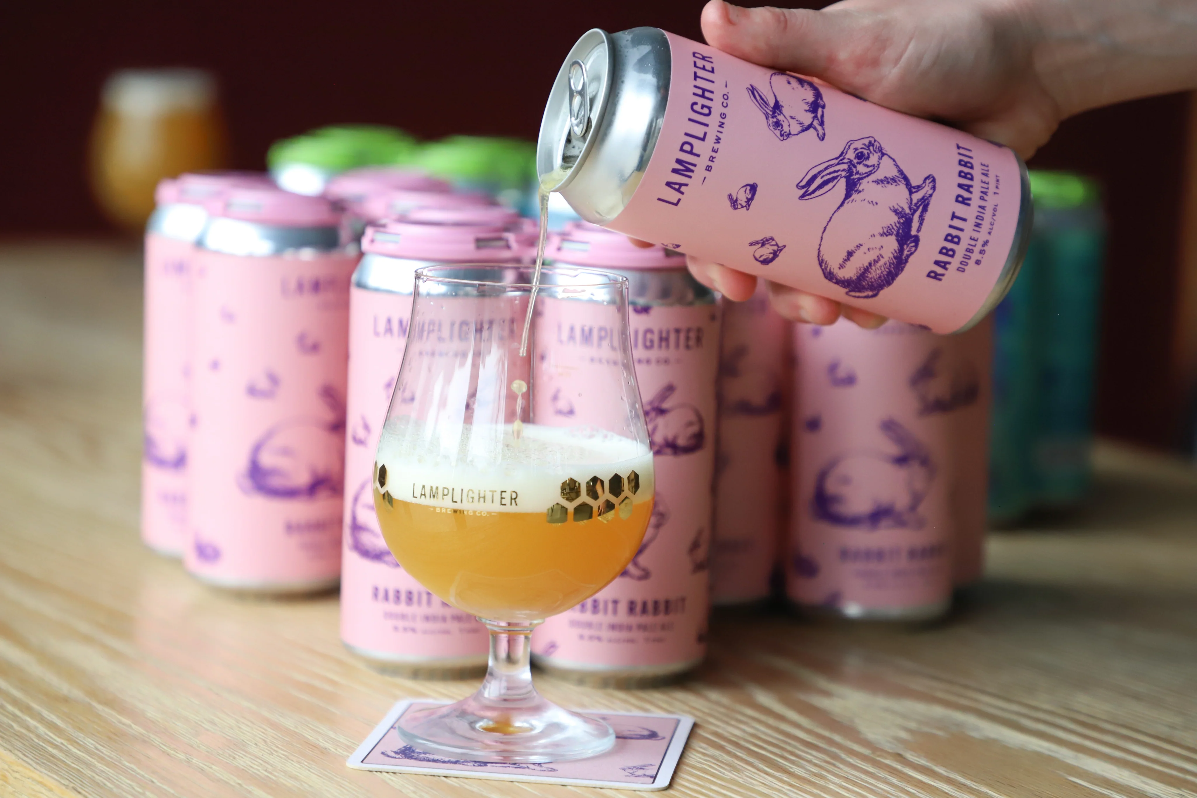 A dangerously drinkable double dry-hopped Double IPA brewed with fruity and flavorful hops. This beer is a veritable juice bomb, boasting bold flavors of mango, melon, and ripe pineapple, all balanced by a velvety mouthfeel and smooth finish. Named after the somewhat alarming number of rabbits spotted all over Cambridge... kick back and hop to it.